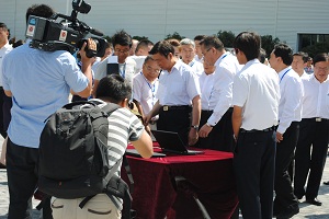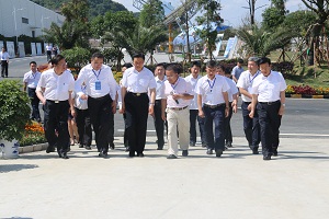 2014年7月11日,中共中央政治局委员、国家副主席李源潮,贵州省委书记、省人大常委会主任赵克志,省委常委、省委政法委书记、副省长、贵安新区党工委书记秦如培,省委常委、省委秘书长廖国勋,贵安新区管委会主任马常青一行莅临西部国际智能产业园参观指导。西部控股董事局主席陈远东,董事局第一副主席、西部国际智能产业园董事长李西平,执行董事李家生、总工程师许平、总经济师王迅及公司相关人员全程陪同参观,陈远东向李源潮副主席详细介绍了西部国际智能产业园项目的投资、开发、建设、管理等主要方面的工作,并陪同李源潮副主席参观了西部国际智能产业园斯特林项目生产车间、斯特林发电机样机,就项目概况、产能、产值、研发技术等做了详细的讲解及汇报。李源潮副主席首先参观了厂房生产线的操作设备,了解了25千瓦蝶式斯特林光热发电机项目建设情况。随后在斯特林项目负责人的指导下,亲自启动了斯特林光热发电机,并观看了新能源发电机的运转过程。李源潮副主席表示,西部控股能把这种智能化、国际化的新型能源发电机引领至贵安新区、引领至国内,并在短时间内落地投产,是件非常了不起的事情。此举对中国的光电产业具有里程碑式的意义,对贵州的经济和高端设备制造产业起到了巨大的推动作用。希望西部控股在未来把这个宏伟的项目做大做强。陈远东主席表示西部国际智能产业园斯特林项目的投产,是我们西部控股集团成长发展过程中浓墨重彩的一笔。我们将信心百倍不辱使命,精诚团结,加大投入,完成智能终端产品的生产、研发、运营基地的建设。坚决按照李源潮副主席的要求,开发好、建设好、管理好、运营好西部国际智能产业园,为我国的经济、贵州的社会经济发展,做出新的、更大的贡献。