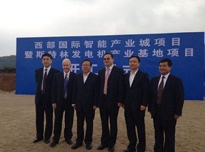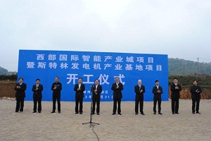 2013年10月21日上午9时,西部国际智能产业城暨斯特林发电机产业基地项目在贵安新区举行了盛大的开工仪式!贵州省委常委、副省长、政法委书记秦如培,贵安新区党委会党工委副书记、主任马长青等省委、区委主要领导参加了仪式。西部控股经营决策委员会主席陈远东、副主席邓志宝及公司有关领导出席了仪式。美国斯特林工程技术有限公司CEO David.J slawson参加仪式。