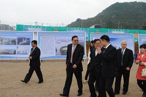 9点30分与会领导和嘉宾为项目奠基。奠基结束后陈远东董事长为秦如培省长等通过展板具体介绍了项目情况。